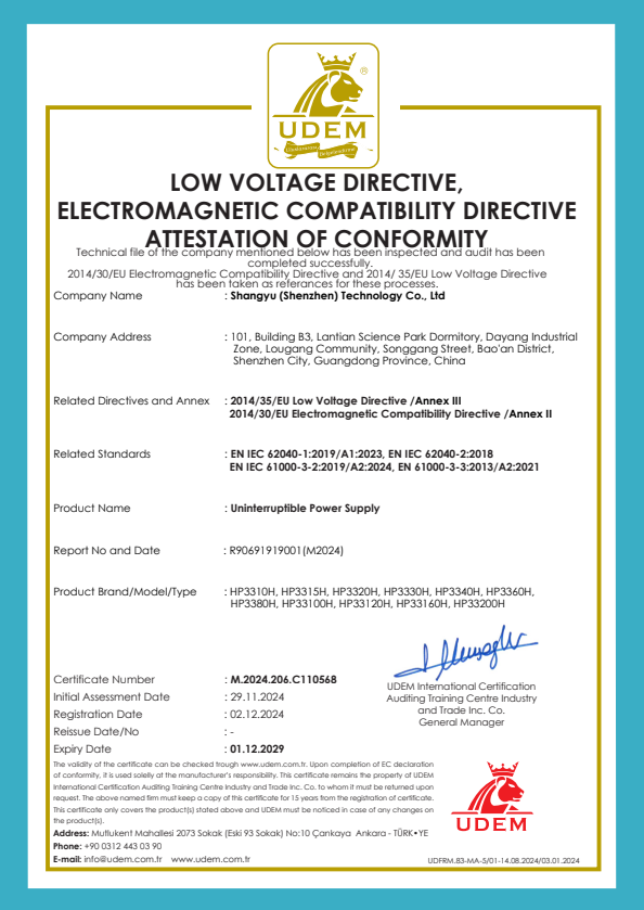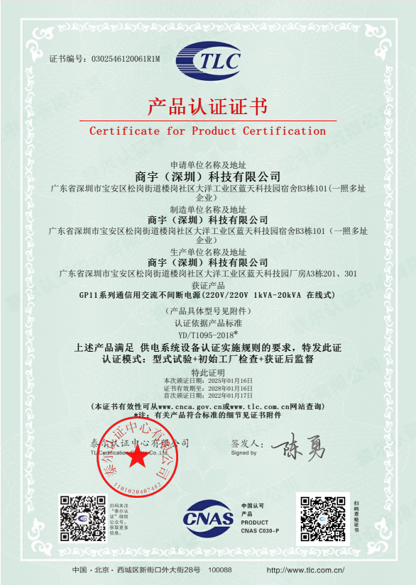 商宇作为国内电源协会理事单位,其产品先后通过了泰尔认证、节能认证、CCC认证、CE认证等多项行业认证。公司自主研发生产的模块化UPS CPY系列及绿色高效节能的HP系列高频UPS获得“数据中心优秀产品奖”;